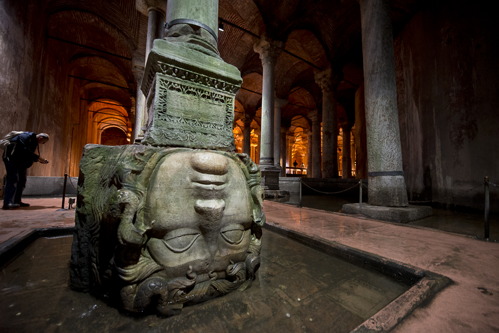 I’m looking up at a 300-year-old dome, which rests atop eight marble pillars and dominates an octagonal room roughly the size of half a tennis court. Every surface is grey marble, and the room is currently heated to a stifling, steamy 140 degrees. Within the dome ceiling are several softball-sized pieces of glass, allowing dots of dim light inside. The walls are lined with what look like fancy marble mop sinks. The room’s steamy heat is causing a steady drip of water from the chandelier that hangs from the center of the dome.