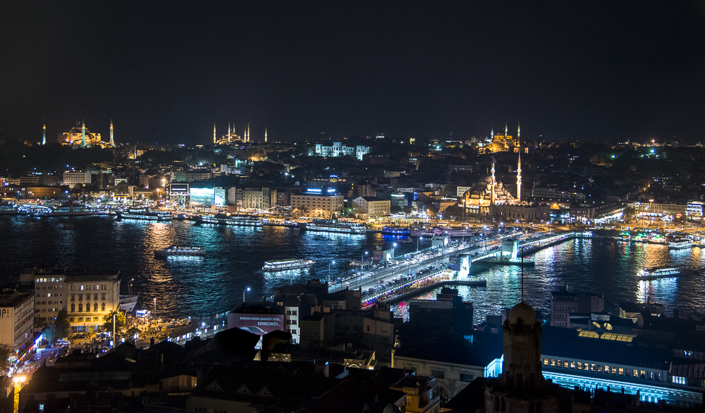 The picture way below of the tiny island is Maiden’s Tower – taken from the Asian side, looking back toward the Hagia Sophia and Blue Mosque in the European Old Town. The fancy blue rooms are the prince’s apartments at Topkapi Palace. The police in riot gear were in Taksim Square. Apparently a Kurdish protest had been averted just as I arrived – and unlike a similar protest two days prior, the cops didn’t even use the tear gas.