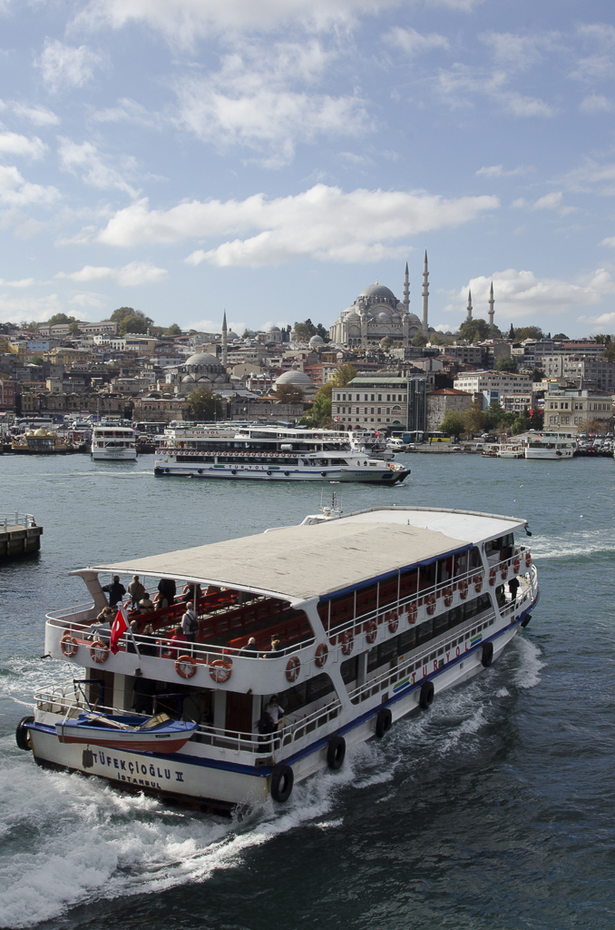If you’re like me, you’ve always been a little hazy about where Europe ends and Asia begins. In Southern Europe, at least, there’s a very definitive answer: downtown Istanbul. The Bosphorus Strait — a waterway that bisects Istanbul and connects the Black Sea with the Sea of Marmara – divides Istanbul’s 9 million European residents from its 4 million Asian residents. Apparently at least a million Istanbulites (Istanbullies?) have a transcontinental commute each weekday morning. My first-ever trip to Asia was via a 10-minute ferry ride across the Bosphorus.