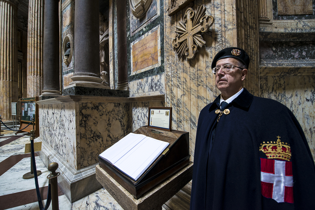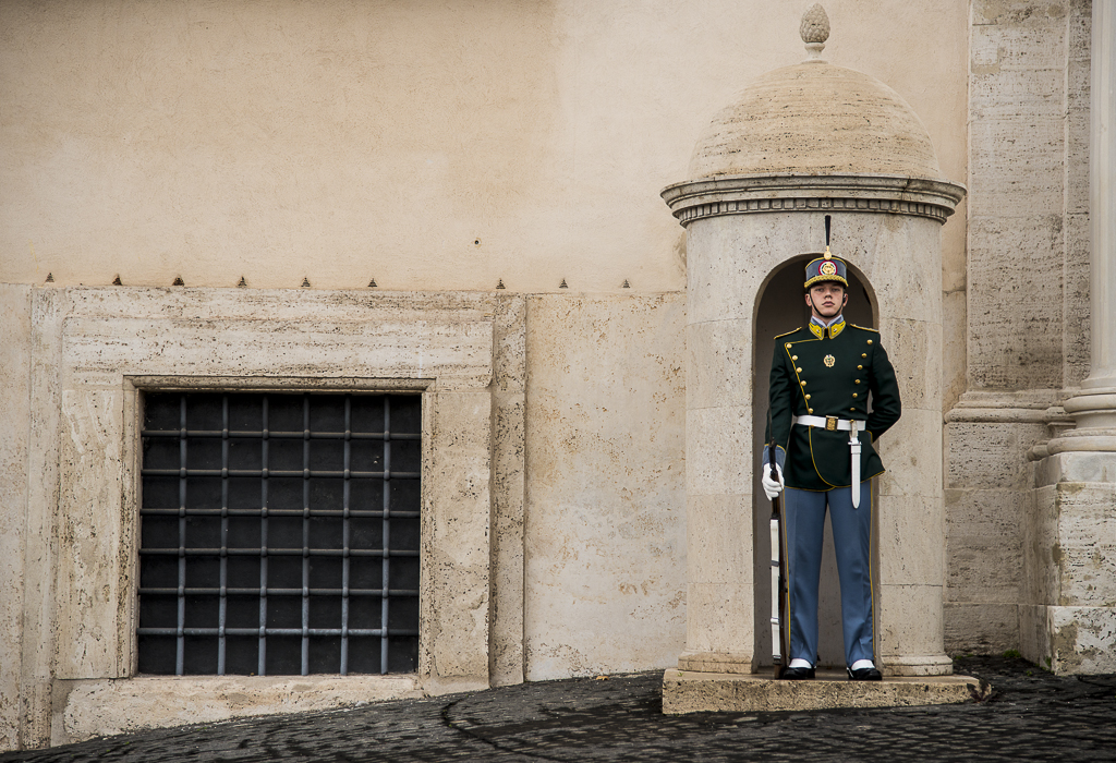 The guy (above) in the helmet is one of the special guards whose sole function is to protect the Italian president. The walking priests and the parading bishops are at the Vatican. The beret-wearing guard in glasses is a “royalist,” standing ceremonial guard over the tomb of the last Italian King – inside the Pantheon.